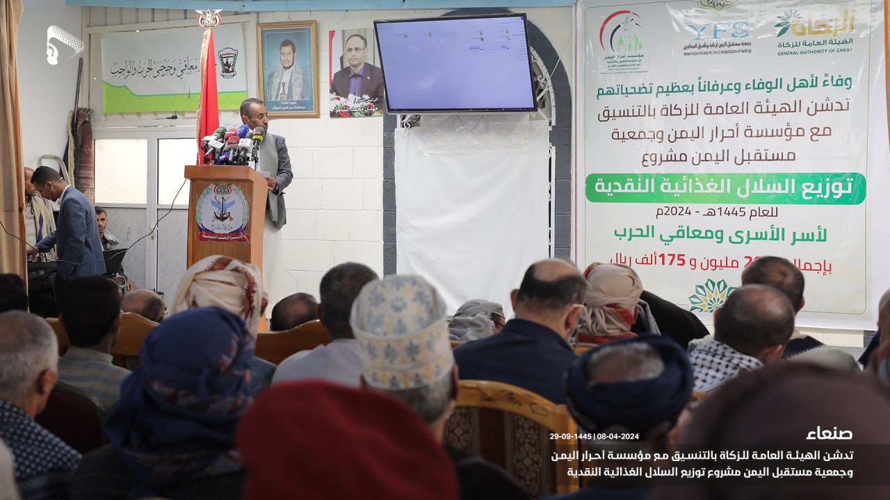 دشنت الهيئة العامة للزكاة بالتنسيق مع مؤسسة أحرار اليمن وجمعية مستقبل اليمن، اليوم، مشروع توزيع السلال الغذائية النقدية لأسر الأسرى ومعاقي الحرب، بإجمالي 293 مليونا و175 ألف ريال.