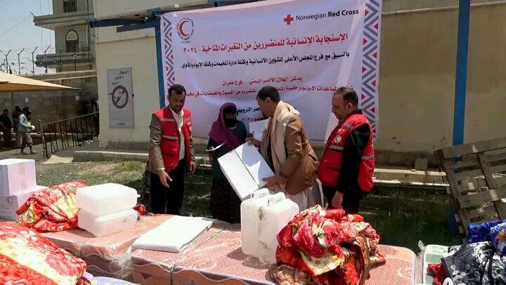 بدوره أشار مدير فرع جمعية الهلال الأحمر علي العزب إلى أن المساعدات التي تشمل توزيع مواد إيوائية من فرش وأدوات مطبخ وطرابيل وحقائب نظافة تستهدف الأسر المتضررة من الأمطار في مخيمات النازحين بمدينة عمران.
