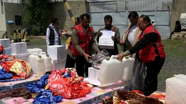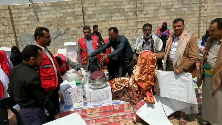 دشن الهلال الأحمر اليمني بمحافظة عمران وبالتنسيق مع فرع المجلس الأعلى للشؤون الإنسانية ، توزيع المساعدات الايوائية لعدد ٢٤٢ أسرة من المتضررين جراء الأمطار في مخيمات النازحين بمدينة عمران.