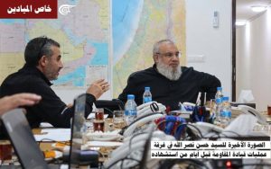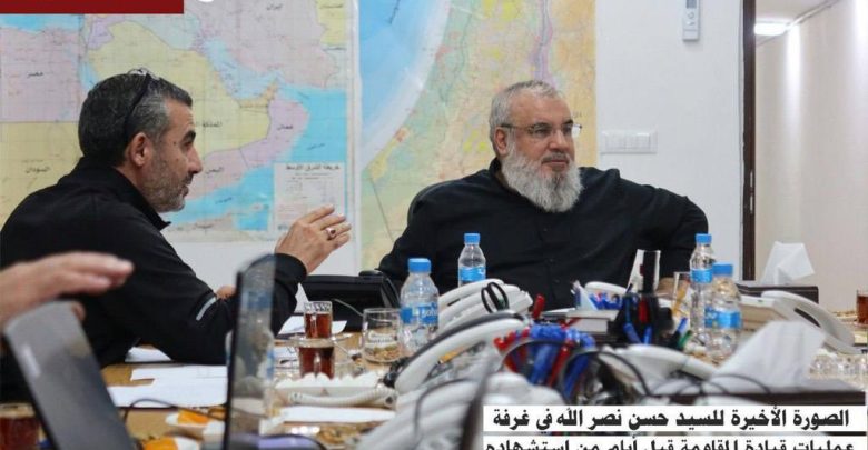 نشرت قناة الميادين آخر صورة للشهيد السيد حسن نصر الله في غرفة عمليات قيادة المقاومة قبل أيام من استشهاده..