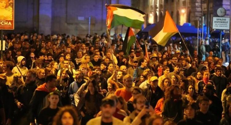 وأفادت مصادر إعلامية أنه بعد الإعلان عن اعتراض قوات العدو الإسرائيلية أسطول الصمود الذي يحمل مساعدات إنسانية لقطاع غزة ، انطلقت مظاهرة في العاصمة الإيطالية روما احتجاجا على عملية الاعتراض.