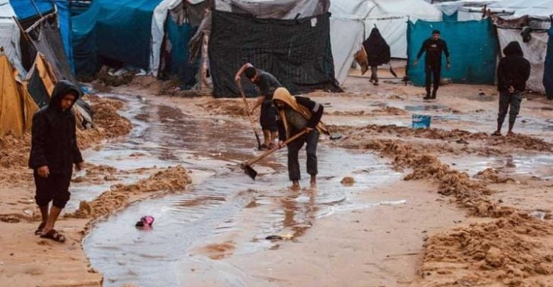 وتسببت الأمطار الغزيرة، صباح الثلاثاء، بغرق عشرات الخيام التي تؤوي نازحين في منطقة المواصي بمدينة خان يونس جنوبي قطاع غزة.